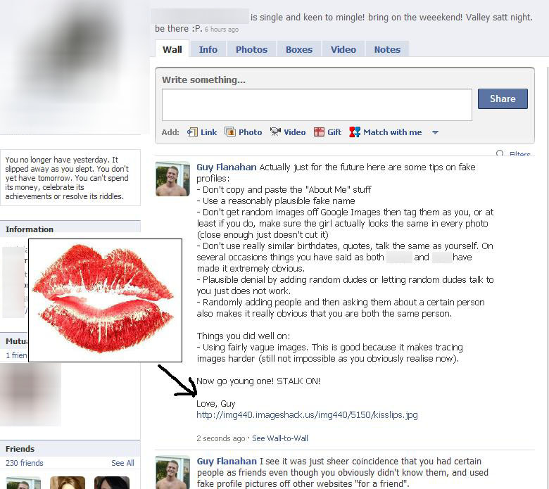I think we’ve learnt a few lessons here today – don’t fuck with friends of mine on Facebook using a fake profile, because it might not end well. If you’re going to make a fake profile, at least make it plausible. And finally; making alter-ego’s as an in-joke can be quite entertaining.