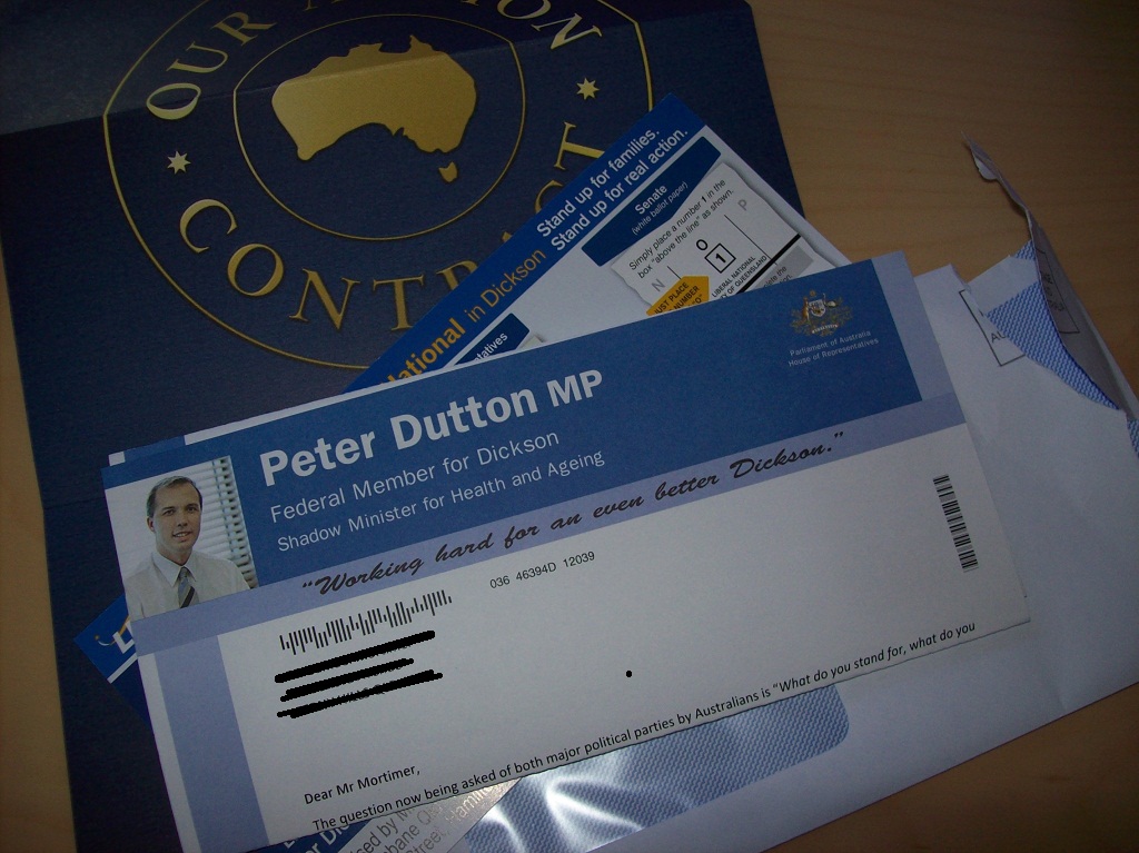 Rather than spending $2.50 of tax payers money on whatever piece of shit glossy government “our party will do this for you! Vote for us!” bullshit spam letters, I’d rather they just send everyone a cheque to the same value. Watermark your god damn face on it for all I care, just have “With thanks, (political party)” on it and I’ll gladly cash it! Rather than waste anymore of your our money on glossy bullshit, how about just giving me some of my tax back? I wouldn’t mind! At least if one of you did it, you’d all start doing it. Think of the benefits… one party paying more than the next to win support… All the while we’re cashing cheques, happy just to be getting something back from you jerks for once!