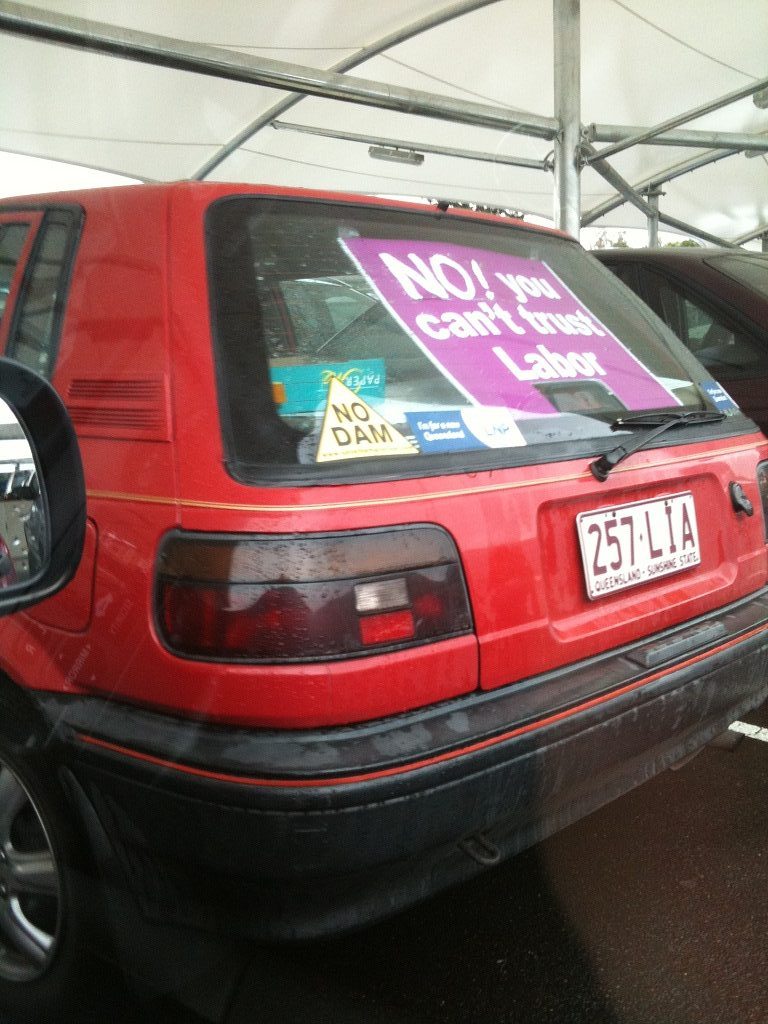 Everywhere you go, politics is there. The unionists with the dumb car stickers, the billboard ads, the television ads, the radio ads and lest we forget, many a defaced campaign sign in someones front yard. The people running in the campaign go on television every day talking about shit I just don’t care about (failing that, they say something that shits me instead), coming live from some electorate they’ve literally never visited before, but are visiting today because their advisers (or ‘puppeteers’ as I like to call them) told them it was probably in their best interest.